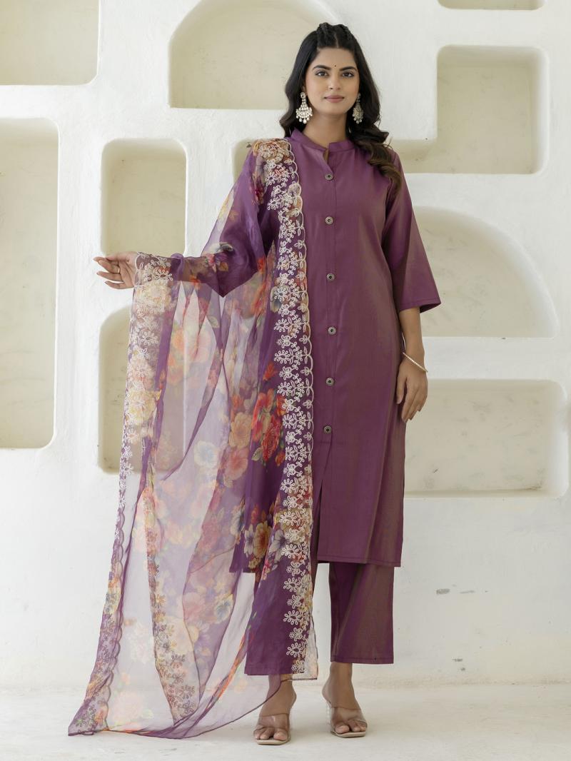 | Fabric : | Kurta Fabric: Shimmer Silk fabric Bottom Wear Fabric: Shimmer Silk fabric Dupatta Fabric: Organza with embroidery dupatta Dupatta Length: 2.10 meter Bottom Length: 37 Inches Top Length: 45-inch Approx Sleeve Length: Three-Quarter Sleeves Product Information: Set Type: Kurta With Bottom Wear & Dupatta Kurta Type: Straight Bottom Type: Pant Pattern: Button Type Multipack: 1 Kurta, 1 Pant, 1 Dupatta Fit Type: Tailored for elegance and ease |
