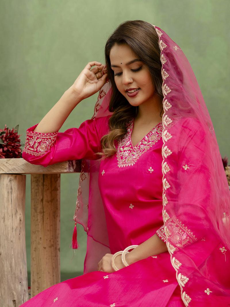 | Fabric : | Kurta Fabric: Silk Blend Bottom Wear Fabric: Silk Blend Dupatta Fabric: Organza with embrodery dupatta 2.10 meter Dupatta Length: 2.10 meter Bottom Length: 37 Inches Top Length: 45-inch Approx. Sleeve Length: Three-Quarter Sleeves Product Information: Set Type: Kurta With Bottom Wear & Dupatta Kurta Type: Straight Bottom Type: Pant Neck Type: V-neck Pattern: Embroidered Multipack: 1 Kurta, 1 Pant, 1 Dupatta Fabric care: Dry Clean Only Country of Origin: India |