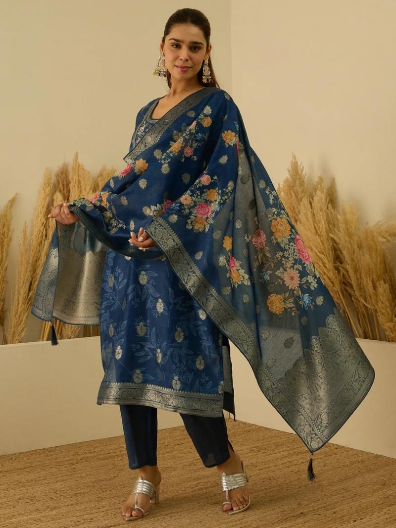 Buy VP 9727 T Silk Blend Embroidered Straight Kurta Set with Trousers & Dupatta full catalog online from Textilecatalog at wholesale price.