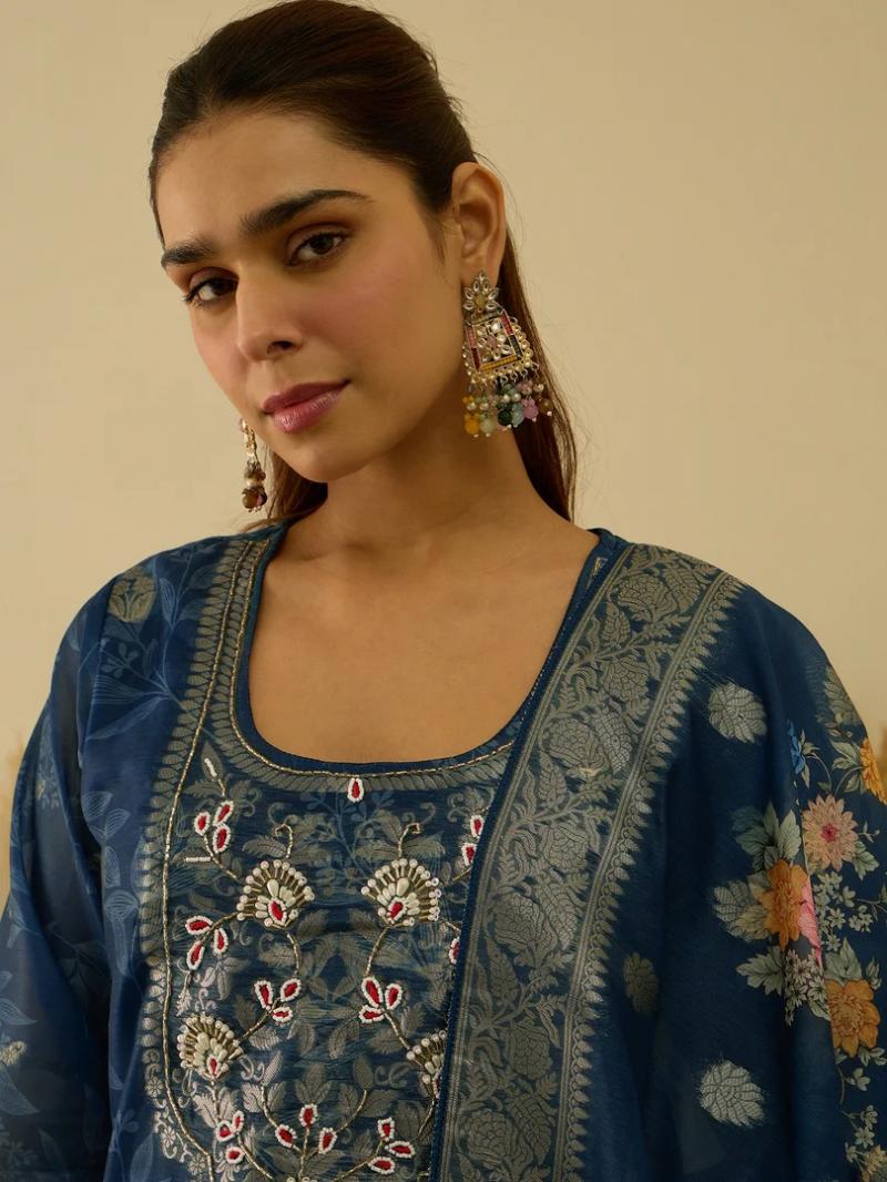 | NAME: | VP 9727 T Silk Blend Embroidered Straight Kurta Set with Trousers & Dupatta |