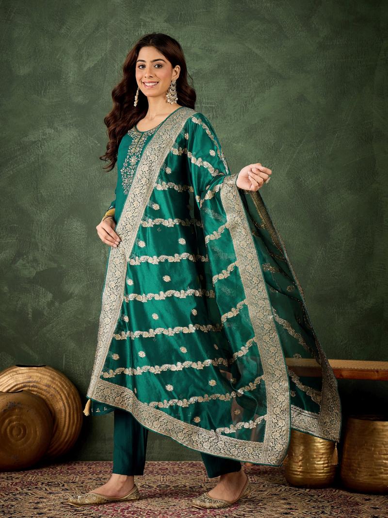 Buy VP 9732 G Women Kurta and Pant Dupatta Sets Viscose Rayon Fabrics with Embroidery Handwork full catalog online from Textilecatalog at wholesale price.