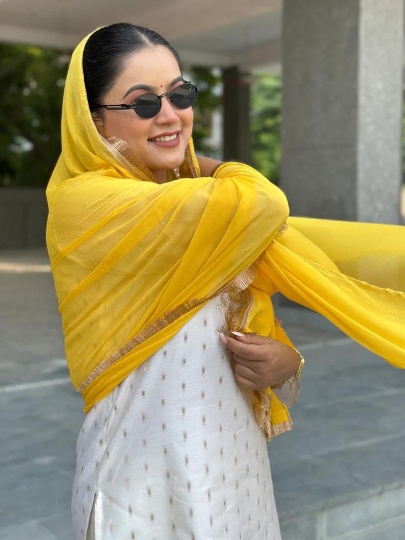| NAME: | VP 9752 Y White Women Kurta and Pant Dupatta Sets Chanderi Silk Fabrics with Embroidery |