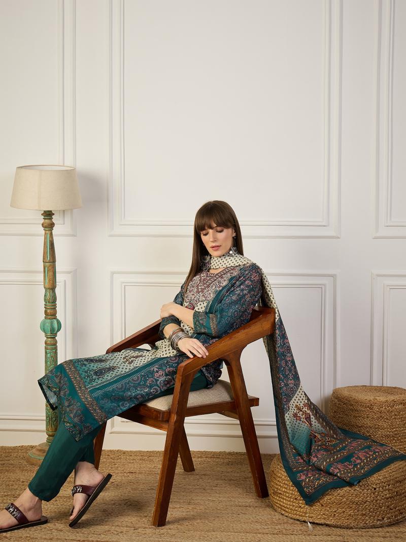 Buy VP 9772 T Teal Noor Ajrakh Kurta Set full catalog online from Textilecatalog at wholesale price.
