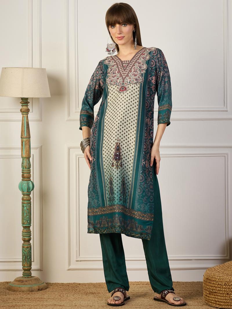 | NAME: | VP 9772 T Teal Noor Ajrakh Kurta Set |