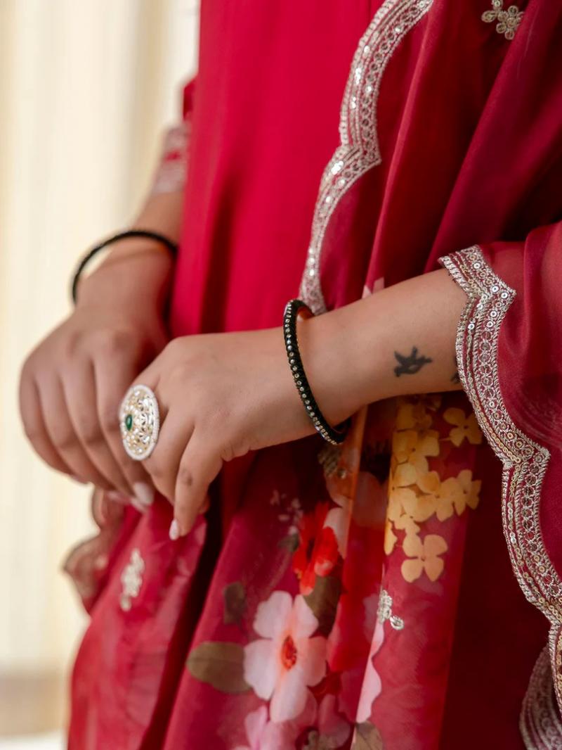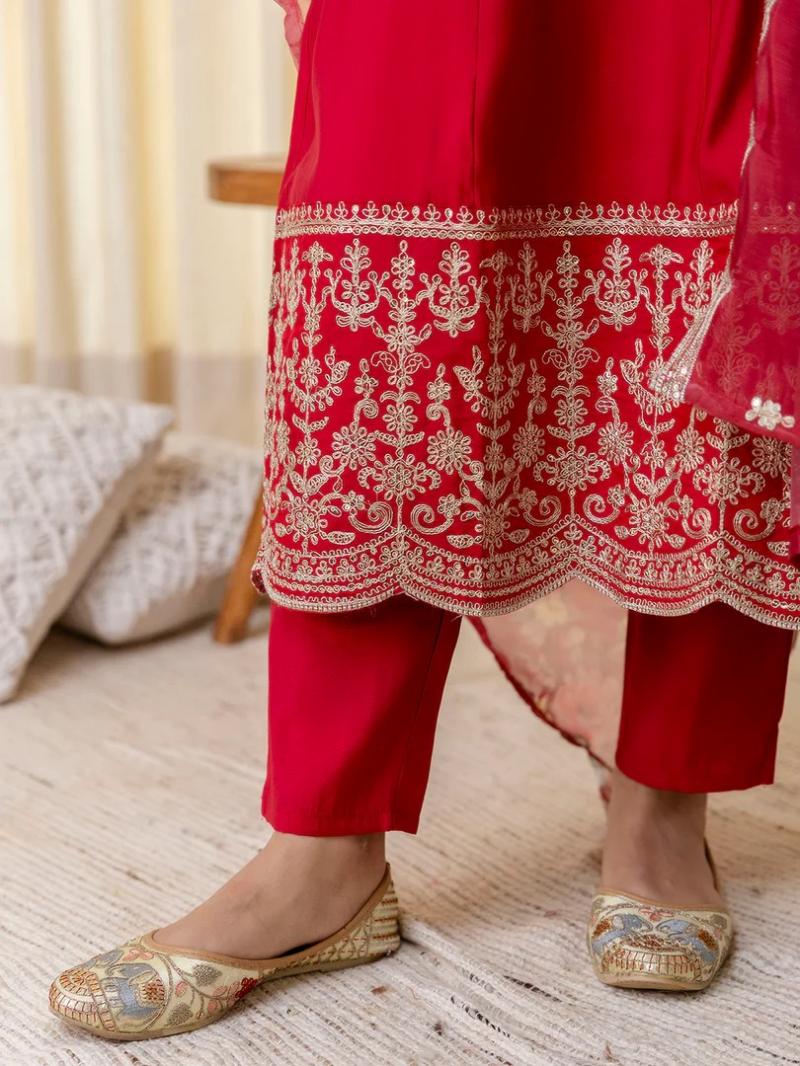 | NAME: | VP 9813 C Cherry red Embroidred Kurta Sets with Sequins Work Women Suits |