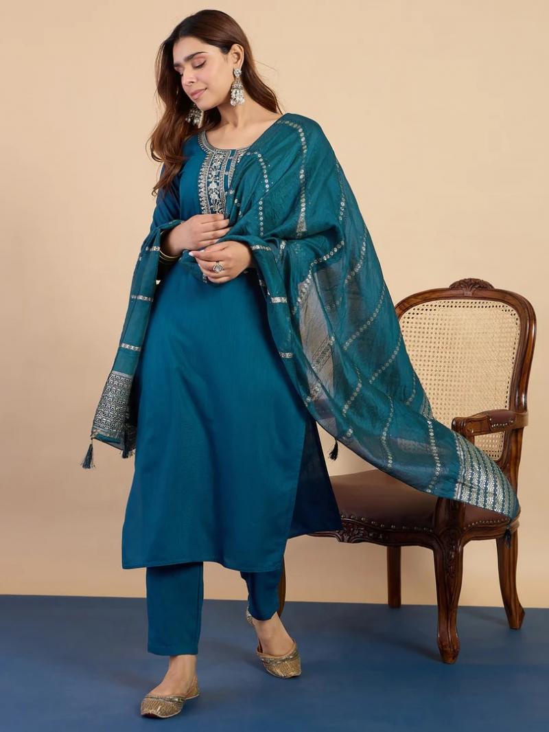 | Fabric : | Kurta Fabric: Cotton Blend Bottom Wear Fabric: Cotton Blend Dupatta Fabric: Silk Dupatta Dupatta Length: 2.10 meter Bottom Length: 38 Inches Top Length: 45-inch Approx. Sleeve Length: Three-Quarter Sleeves Product Information: Set Type: Kurta With Bottom Wear & Dupatta Kurta Type: straight Bottom Type: Pant Neck Type: Round Neck Pattern: Embroidered Multipack: 1 Kurta, 1 Pant, 1 Dupatta Fabric care: Dry Clean Only |